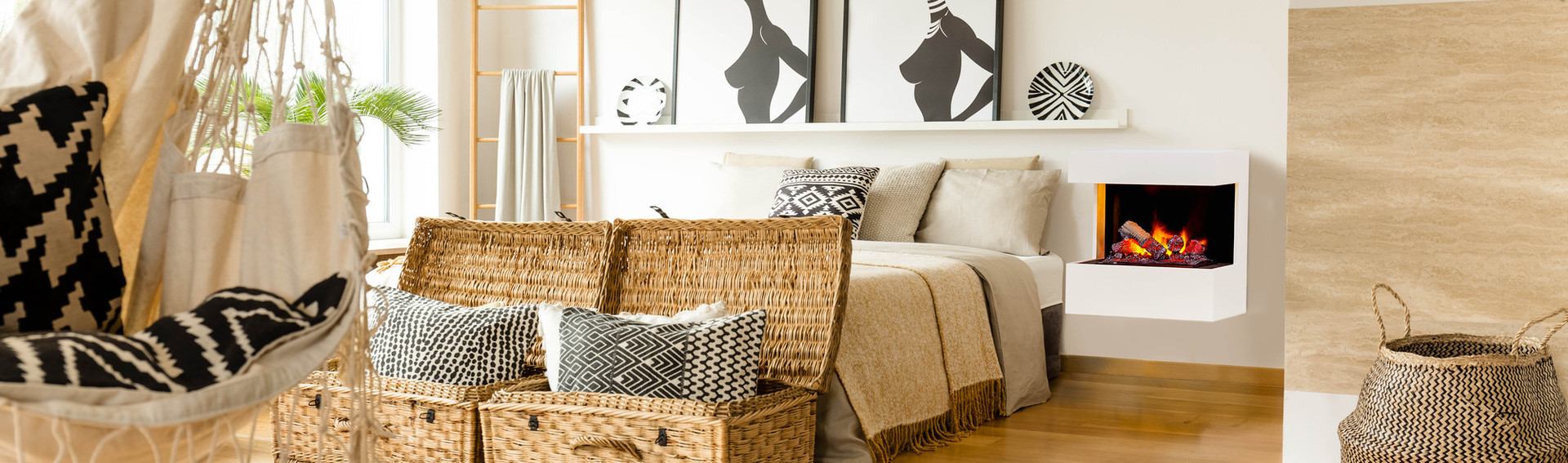 Regulerbar flamme. Leveres med dekorative vedkubber, 1 stk forstøver (forbruksvare), 4 stk halogen lyspærer (forbruksvare), fjernkontroll og ledning med støpsel. Farge peis hvit. Innsats sort. Type OMC4.