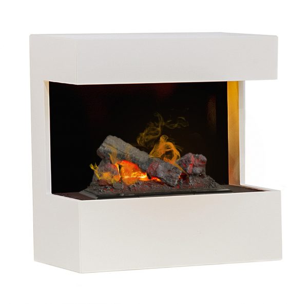 H62 x B60 x D30cm. Elektrisk peis som gir en illusjon av ekte peisild med sin patenterte 3D teknikk. Flammene er en projeksjon av lys på damp og veden “brenner” 3-dimensjonalt, akkurat som på tradisjonelle peiser. Ekte mystikk! Teknologien gir ingen varme og krever regelmessig etterfylling av vanntank.